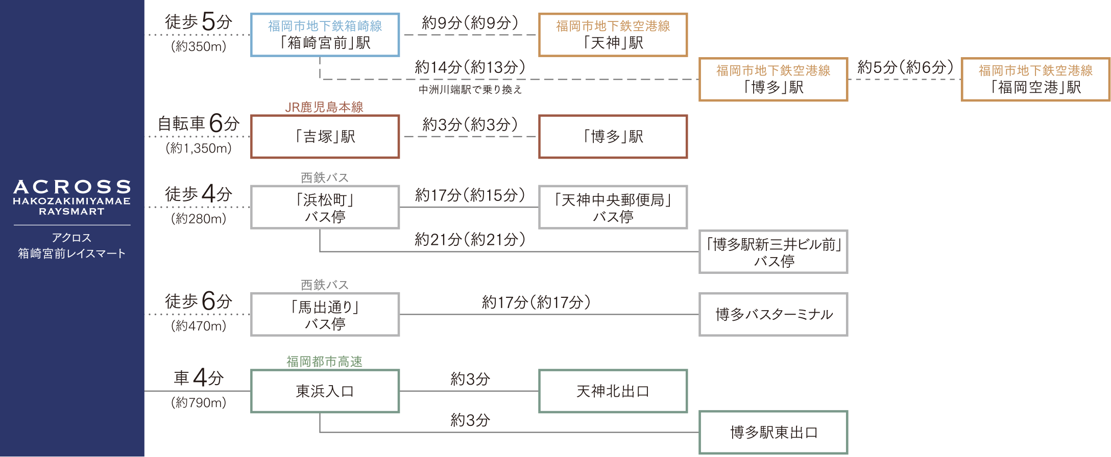 「博多」駅へ3分 (3分) JR鹿児島本線を利用