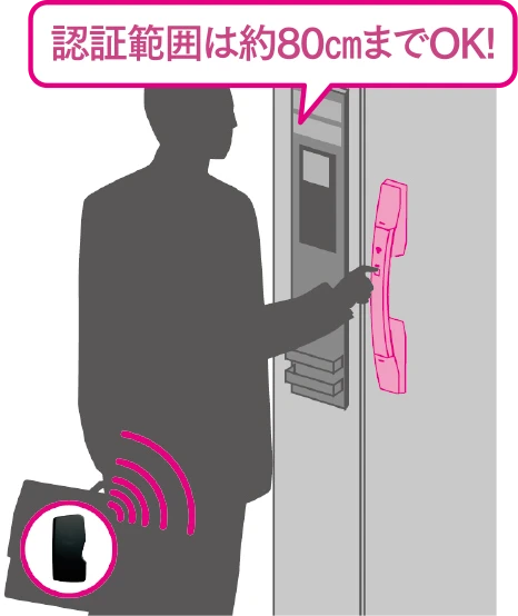 鍵を取り出さずに共用部メインエントランスや駐車場からの出入口を解錠できます。荷物が多い時も、ストレスなく自動ドアを通過可能です。非接触キーの場合はリーダに鍵をかざすと解錠します。