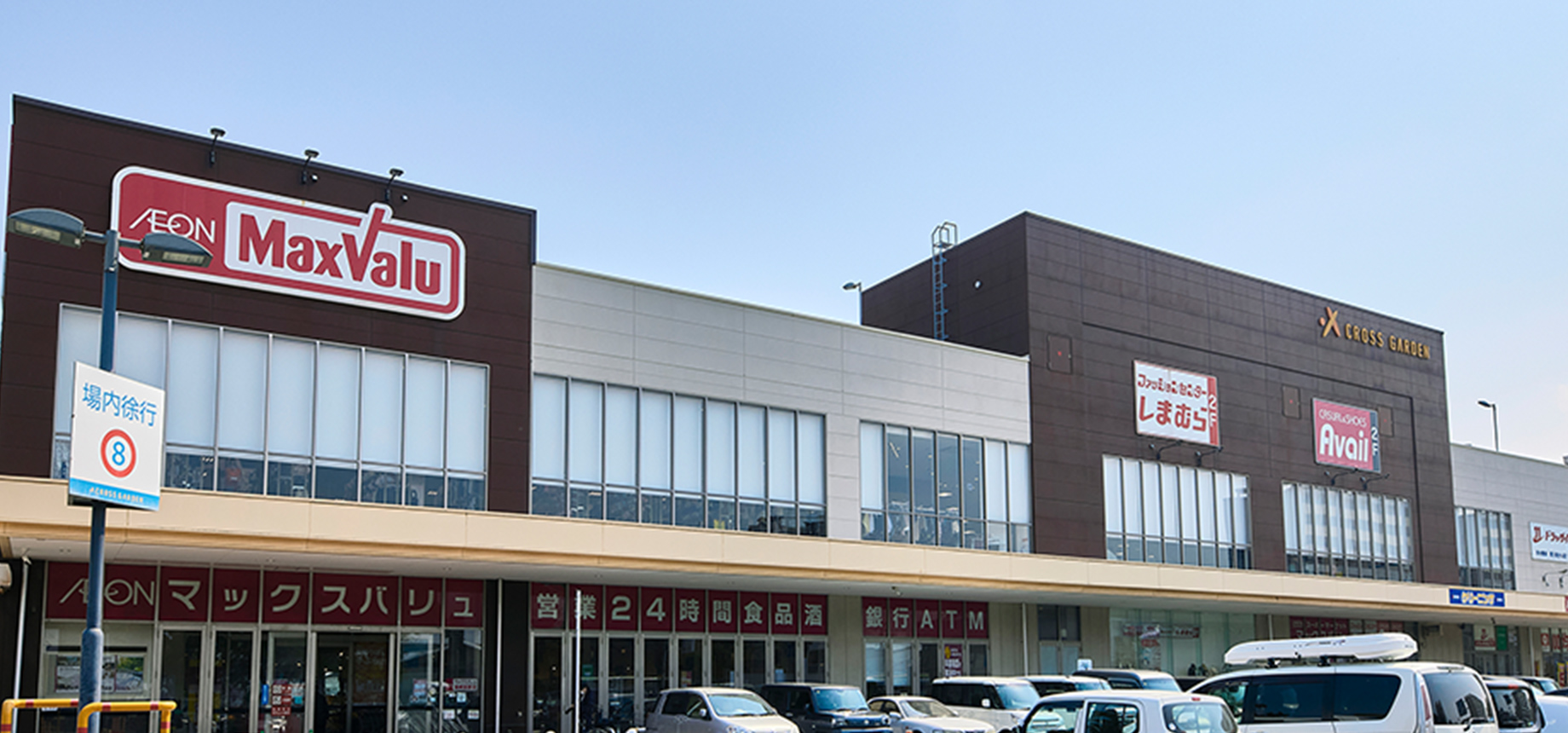 国道3号線沿いに構えるショッピング施設で、マックスバリュや