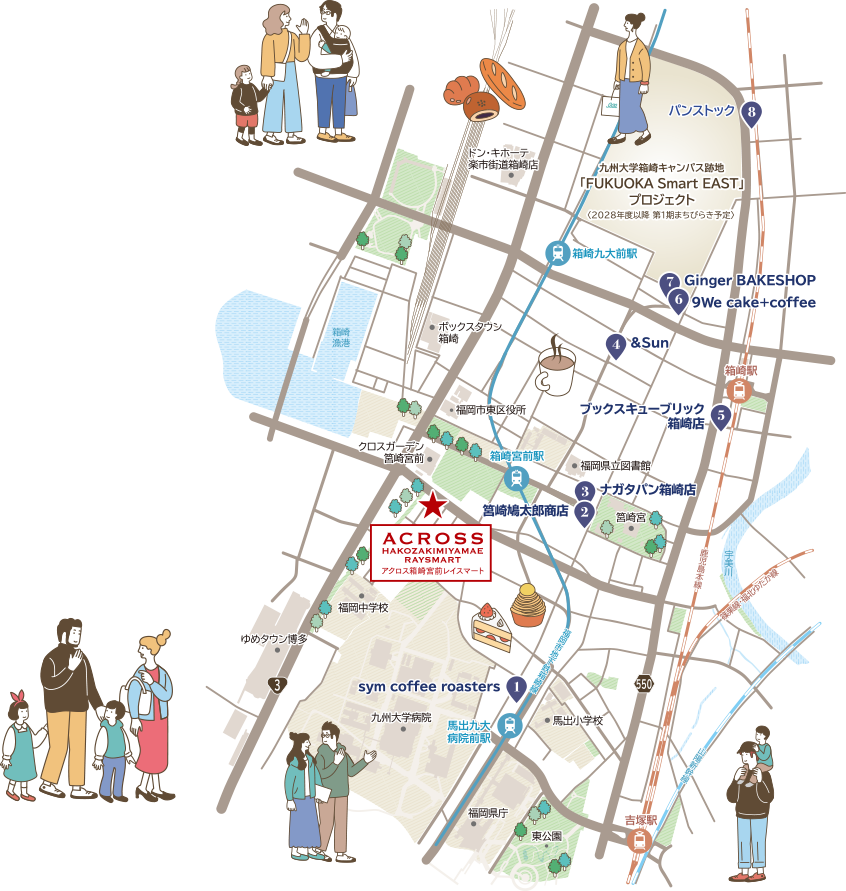 箱崎エリアには、一人の時間も、家族や友人との時間も、