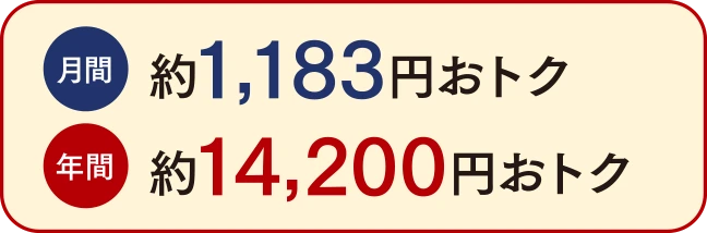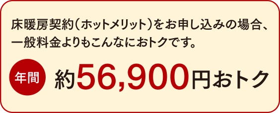 ※おトク額はホットメリットにおける年間890m3(45MJ)ご使用モデルでの計算例です。