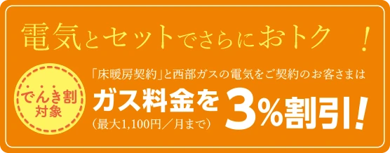 当マンションでは、受電契約を「西部ガスの電気」でご契約いただくと、【ガス+電気】で様々にお得になるプランをご用意しています。