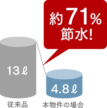 【試算条件】●洗浄水の使用量:従来品13L/回、(GG-J):大4.8L・小3.6L/回・eco小3.4L/回●条件:家族4人(男性2人、女性2人)大1回/日・人、小3回/日・人とした場合、水道代:265円/㎥(下水道料金含む)(「省エネ・防犯住宅推進アプローチブック」より) ※水道料金は税込価格です。