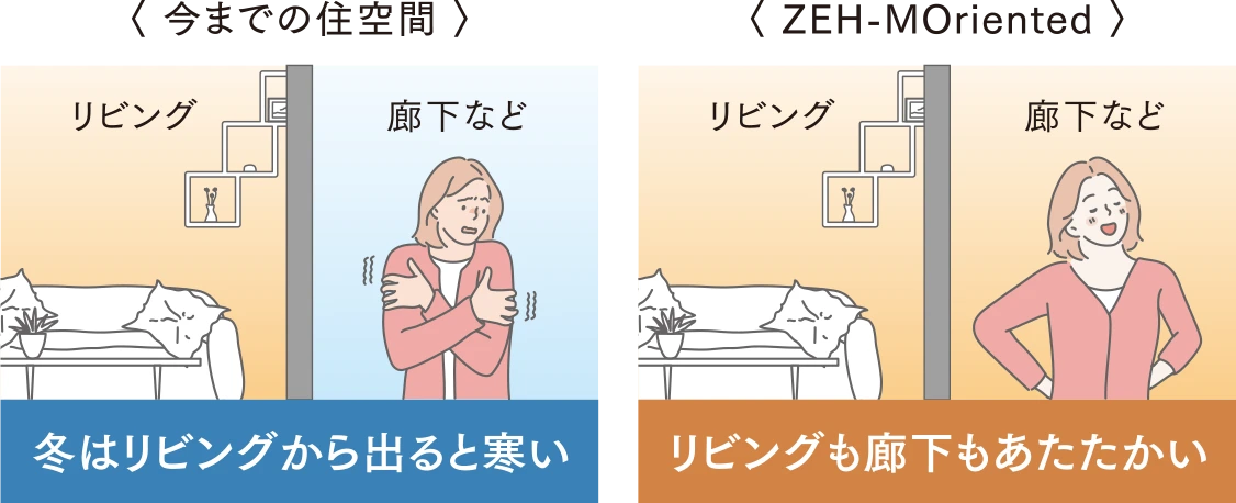 高断熱仕様は、部屋の温度差を抑えることができ、冬場のヒートショックといった健康被害を抑制。快適で健康への効果が期待できます。