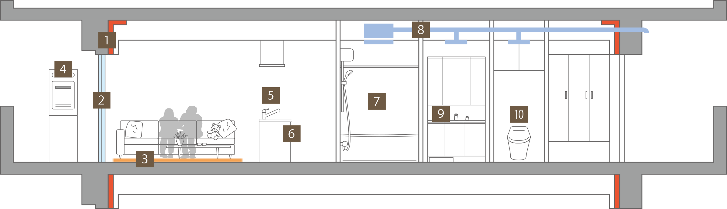 高断熱仕様を施すことにより、「夏は涼しく、冬は暖かい」マンションとして快適で身体にやさしい住空間を実現します。