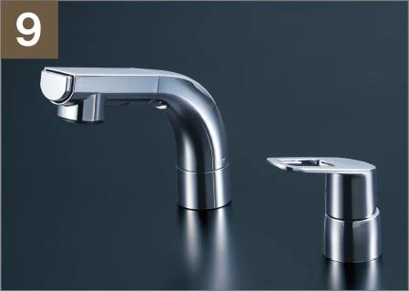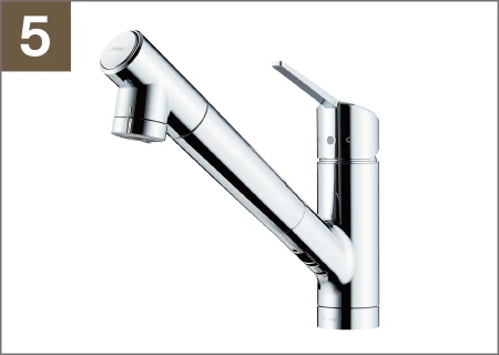 キッチンには節湯C1と節湯B対応の節湯水栓を採用。お湯・湯水混合の範囲で吐水操作をすると、3段階に“カチッ”と動くクリック感があり、意識的に省エネができます。