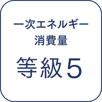 一次エネルギー消費量とは、暖冷房や換気、給湯、照明など建物で使用されるすべての設備機器の消費するエネルギーを熱換算したもの。アクロス箱崎宮前レイスマートは、一次エネルギー消費量の著しい削減のための対策を講じられているとして「等級5」を取得しています。